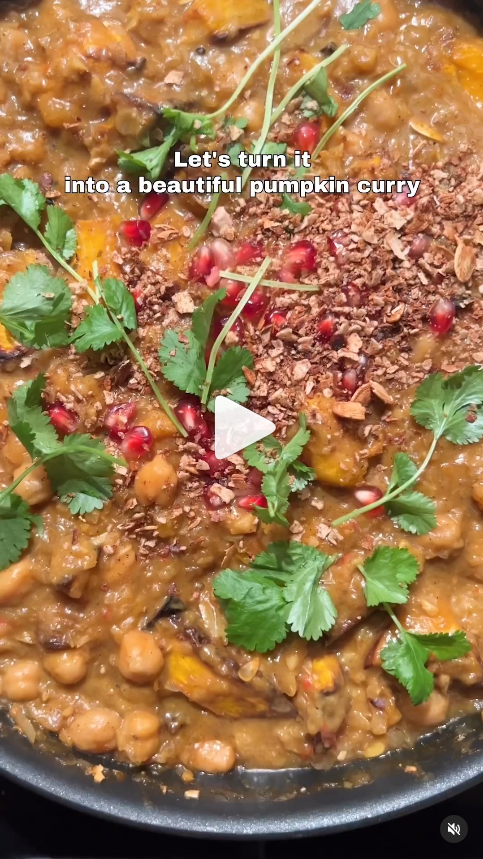 Hi everybody! How is everything with you? Here we’re really getting into Autumn: yellow, orange and red leaves falling on the floor, the specific autumnal smell in the air… oh, so beautiful! And this really calls for comforting recipes (also, considering all the matter of rising living costs, we really need some good food to lift our spirits!). Pumpkin/squash recipes are usually perfect for this weather, but I’ve never been too keen on them: probably because my family had only made roasted pumpkin, which I don’t think is the best way to eat a pumpkin. However, I have been slowly warming up to this vegetable and last year I’ve been using it to make sweet dishes. And this year, I’ve seen the video by Calum Harris of the vegan PlantBoiis making a Pumpkin Curry where his premise was that he “usually would say ‘no’ to a pumpkin curry, that would be the last of [his] options” except for this recipe, so I decided to try it. And let me tell you, as someone who isn’t a fan of pumpkins: I. LOVE. IT. Dead easy, quick, flavourful and delicious.