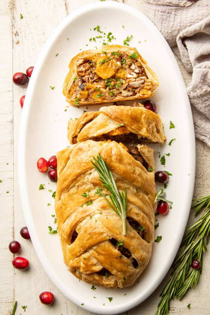 - Allow the vegetable Wellington to cool just for a couple minutes, then slice and serve.