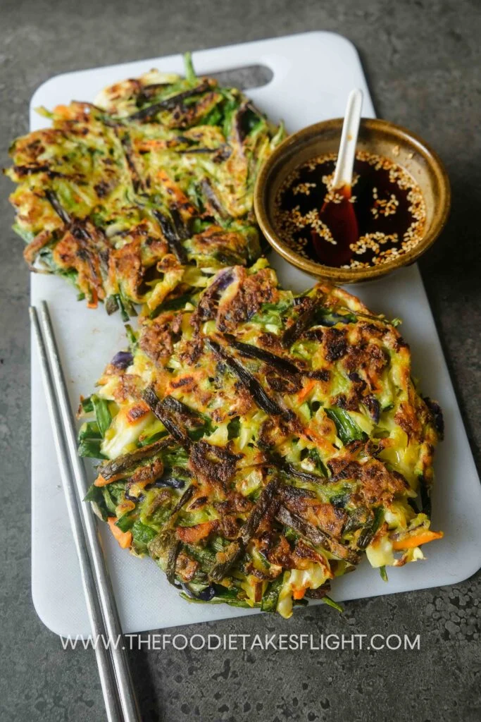 Beautiful kittens, how are you? Last week has been hectic, was back to work after a couple of days off and felt it would have been nice to treat myself to some delicious food for my dinner: I already eyed this recipe not long ago and was waiting for the perfect time to make it, a Monday night after a busy day. I ended up making a bit more and it lasted for Tuesday’s lunch and dinner: from one recipe I got out 3 meals! So, without further ado, here is the recipe for delicious Vegan Yachaejeon (Korean Vegetable Pancakes) by TheFoodieTakesFlight!